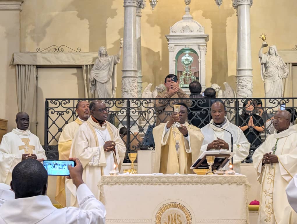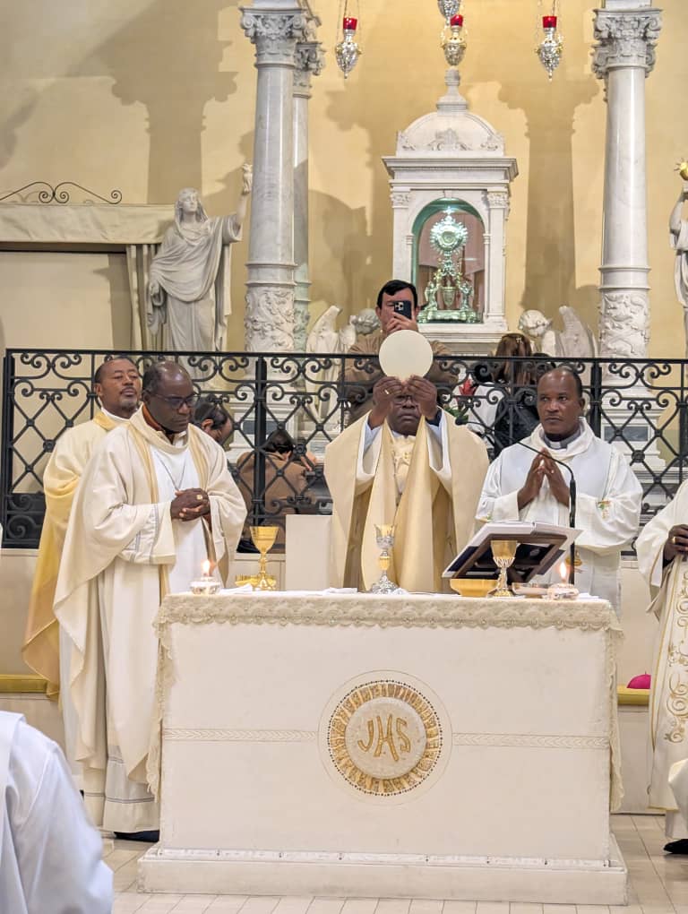 Depuis quelques jours, la délégation du Cameroun est au Vatican pour vivre avec le Pape le Jubilé de l’Espérance. Au milieu de cette délégation se trouve une forte équipe du diocèse de Maroua-Mokolo sous la conduite de notre père évêque Mgr Bruno ATEBA EDO composée de prêtres, de religieuses et de laïcs. Aujourd’hui plus particulièrement, notre père évêque Mgr Bruno a présidé la célébration eucharistique dans l’église du Miracle Eucharistique de LANCIANO. Nos prières les accompagnent.