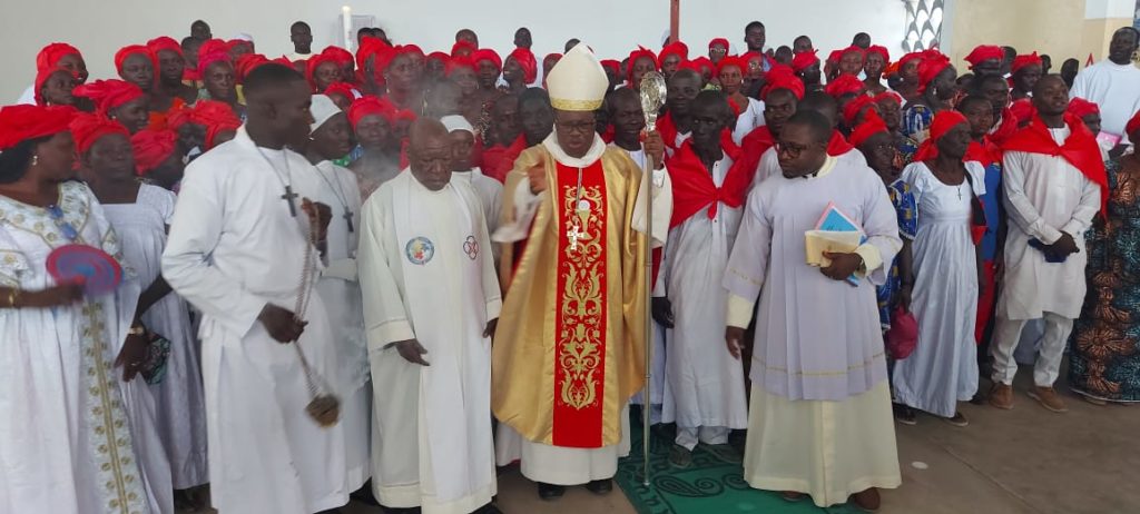 En ce dimanche de célébration, la paroisse Saint-Esprit de Bogo a vécu un moment de ferveur exceptionnelle lors de la visite pastorale de Mgr Bruno ATEBA EDO, évêque du diocèse de Maroua-Mokolo. Cette visite pastorale a été vécue comme un véritable moment de renouveau pour la communauté chrétienne locale. L’événement a été marqué par une ferveur particulière lors de la célébration eucharistique, où de nombreux fidèles ont reçu le sacrement de la confirmation. En recevant l’onction du Saint Chrême, ces chrétiens ont franchi une étape décisive, s’engageant à devenir des témoins plus actifs de leur foi. Au-delà du rite, cette visite de l’évêque est un signal fort de proximité avec les paroisses rurales. Elle permet de resserrer les liens entre la hiérarchie diocésaine et la base, tout en encourageant les fidèles dans leurs défis quotidiens. La présence massive des paroissiens témoigne du dynamisme de l’Église dans cette localité, transformant ce dimanche en une grande fête de famille et de communion spirituelle. Au cours de la célébration eucharistique solennelle, de nombreux fidèles ont reçu le sacrement de la confirmation. Par l’imposition des mains et l’onction du Saint Chrême, ces nouveaux confirmés ont scellé leur engagement chrétien, recevant les dons de l’Esprit Saint pour devenir des témoins actifs de l’Évangile au sein de leur communauté. Une journée de joie et de renouveau spirituel qui marque durablement la vie de la paroisse.